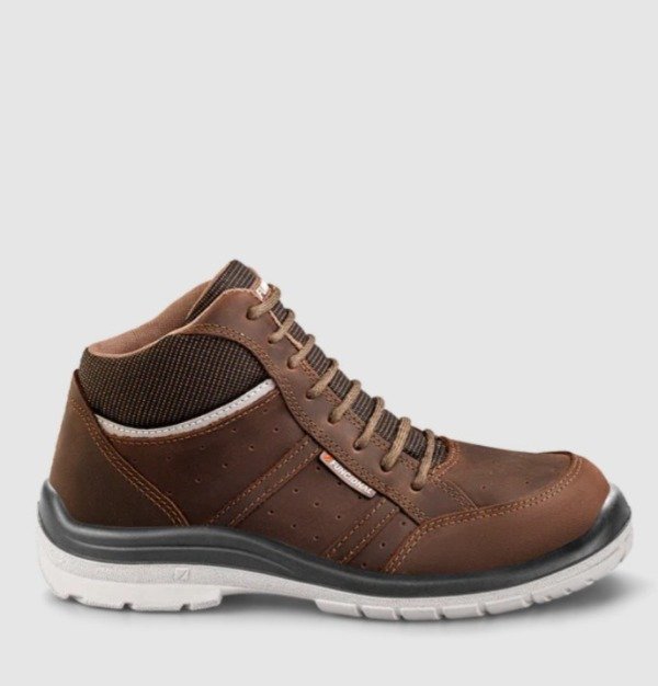Botín urbano ultraliviano de seguridad, fabricado en cuero nobuck y materiales textiles de alta resistencia.